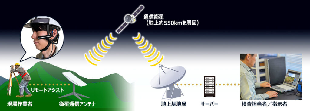 リモートアシストの「衛星通信パック」なら、通常のモバイル回線が使えない環境でも安定した通信を確保し、遠隔支援を行うことが可能です。